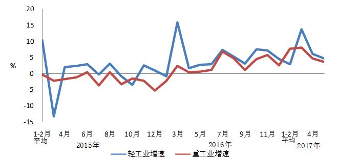 图2: 2015年以来分月轻、重工业用电量增速情况