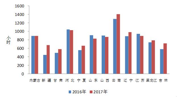 图6:1-5月份风电装机较多省份风电设备利用小时